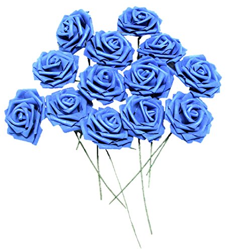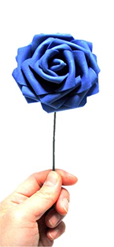 バラ 造花 50個 茎付き 8cm セット 手作り アレンジメント 結婚式 バレンタイン お祝い に(青)