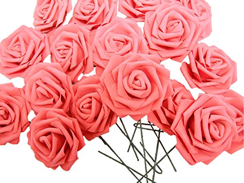 バラ 造花 50個 茎付き 8cm セット 手作り 結婚式 クリスマス パーティー お祝い に