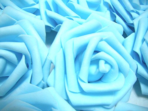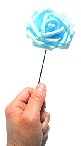 - 工夫しだいで様々なシーンにご利用できる、水色の薔薇の8cm造花、50個セットです。