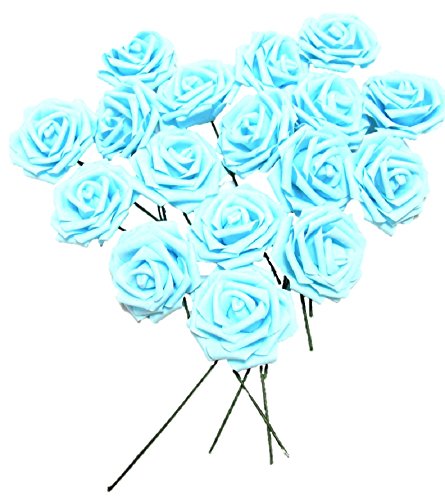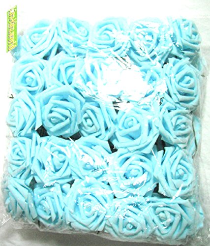 バラ 造花 50個 茎付き 8cm セット 手作り アレンジメント 結婚式 パーティー お祝い に(水色)