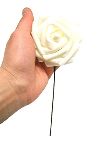 バラ 造花 50個 茎付き 8cm セット 手作り アレンジメント バレンタイン パーティー お祝い に(オフ ホワイト)
