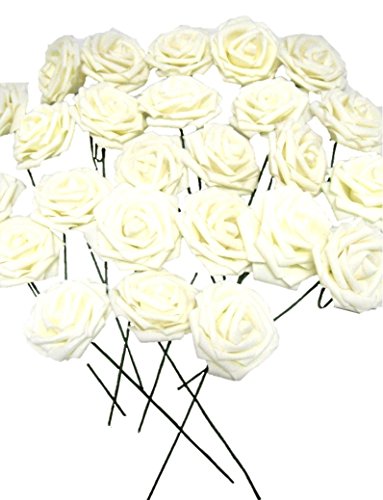 バラ 造花 50個 茎付き 8cm セット 手作り アレンジメント クリスマス パーティー お祝い に(オフ ホワイト)