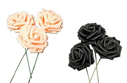 - 工夫しだいで様々なシーンにご利用できる、黒とオレンジの薔薇の8cm造花、50個セットです。