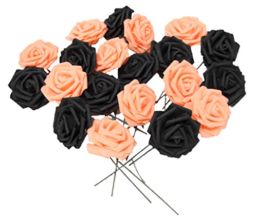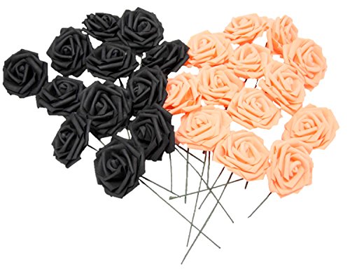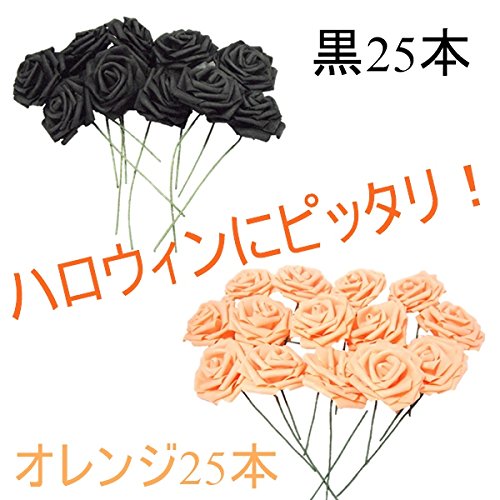 バラ 造花 50個 茎付き 8cm セット 手作り アレンジメント イベント パーティー 飾りつけ (ハロウィン(黒×オレンジ))
