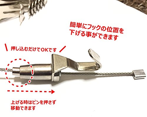 - フック形状の自在金具とワイヤーがセットになった吊下げ金具です。