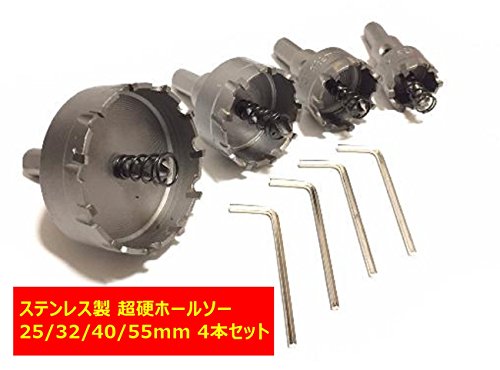 超硬 ホールソー ステンレス 製 25 32 40 55 mm 4 本 セット メンテナンスシート付