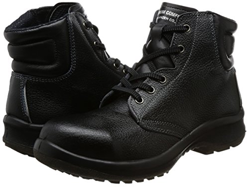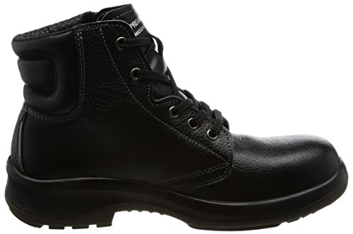 ●2017年度グッドデザイン賞を受賞しました。 [規格] JIS T8101 革製 S種(普通作業用) E(かかと部の衝撃エネルギー吸収性)・F(耐滑性)合格 [製法] I式 [材質] 先芯:新ワイド樹脂、甲被:牛クロム革(ソフト型押)、中敷:プレミアムインソール(抗菌・防臭)、靴底:発泡ポリウレタン2層底 [標準重量] 840g/足(基準23.5cm) ※両足での重さです。 [サイズ] 22.5cm(EEE) [色] ブラック [商品説明] ●ワイド樹脂先芯:幅広で履きやすい樹脂先芯を採用。 ●発泡ポリウレタン2層底:耐滑性、耐摩耗性、クッション性に優れたソールです。 ●耐滑底(最高レベル):最高レベルの耐滑性。油や水などで特に滑りやすい床面での作業に適した滑りにくい靴です。 ●スリップサイン:靴底に滑りの原因、底減りが目視でわかる3ヵ所のサイン付き。交換時期の目安です。 ●かかと衝撃吸収:クッション性に優れた素材を使用し、足にかかる衝撃を軽減します。 ●リフレクター:夜間での作業でも光を反射させ自分の位置を知らせる事が可能 ※商品のデザイン、仕様、価格等は予告なく変更となる場合がございます。