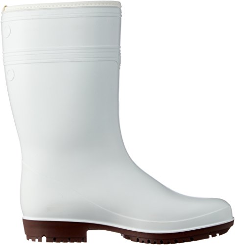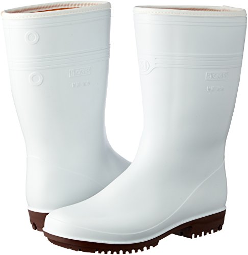 [材質] 先芯:なし、甲被:PVC(防寒ウレタン内装)、中敷:EVA全敷(通気穴付き)、靴底:PVC [標準重量] 1,500g/両足 [標準高さ] 300mm [標準筒周] 420mm ※各標準の基準:26.0cm [製法] I式 [サイズ] 24.0cm ※0.5サイズはありません。 [色] ホワイト [特長] ●優れた耐油・耐薬品性に加え、動植物性油にも強い素材を使用しています。 ●長靴同士の「くっつき」が原因によるつまずきや転倒を防止するため、くっつき防止の加工を施しています。 ●通気穴つきのインソールは取り外し可能です。 [商品説明] ●PVC底(HG):水・油に強く、滑りやすい床でも耐滑に優れるハイグリップソールです。 ●耐滑底(最高レベル):最高レベルの耐滑性。油や水などで特に滑りやすい床面での作業に適した滑りにくい靴です。 ●スリップサイン:靴底に滑りの原因、底減りが目視でわかる3ヵ所のサイン付き。交換時期の目安です。 ●食品生産・加工・厨房などでの安全管理や衛生管理に抗菌性能が新たに加わりました。 ●耐油・耐薬:水・油・薬品が靴内に浸透するのを防ぐ仕様の靴です。 [注意点] つま先保護性能(先芯装備)はありません。 本製品は内装材により内寸法が小さくなっております。通常より1cm程度大きめのサイズの選択をおすすめいたします。 ※商品のデザイン、仕様、価格等は予告なく変更となる場合がございます。