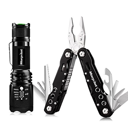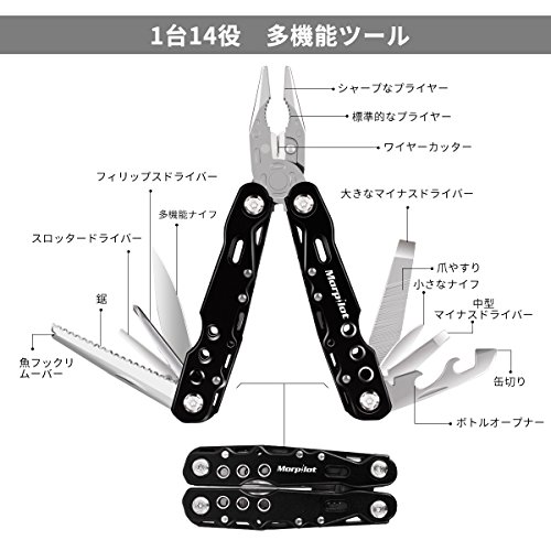 マルチツール Morpilot 1本14機能 ペンチ ナイフ ドライバー ステンレス製 折りたたみ コンパクト 明るさ500ルーメン LED懐中電灯付き キャンプ アウトドア 登山 防災 収納セット