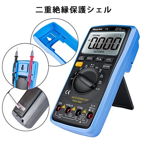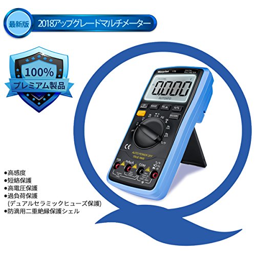 Morpilot デジタルマルチメーター 自動測定 6000カウント実効値 DC/AC電圧・電流・抵抗・容量・周波数・温度・連続性 テスター 大型バックライト付きLEDディスプレイ搭載