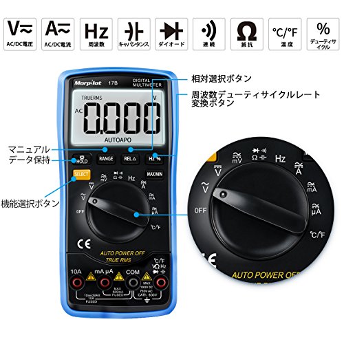 - 多機能:AC / DC電流、AC / DC電圧、抵抗、静電容量、真のRMS、ダイオード、連続性、周波数、温度、最大/最小、相対値測定、デューティサイクル試験などに使用できます