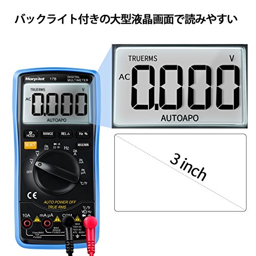- 大型バックライト付きLEDディスプレイ搭載:このマルチメーターは、高21mm、3.0インチLCDディスプレイのバックライト付き、明るい場所でも値を読み取ることが容易です