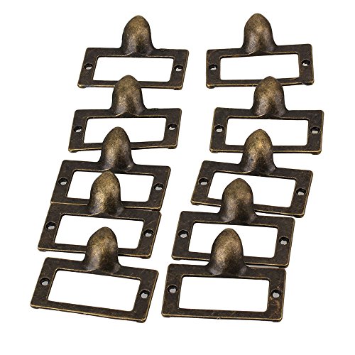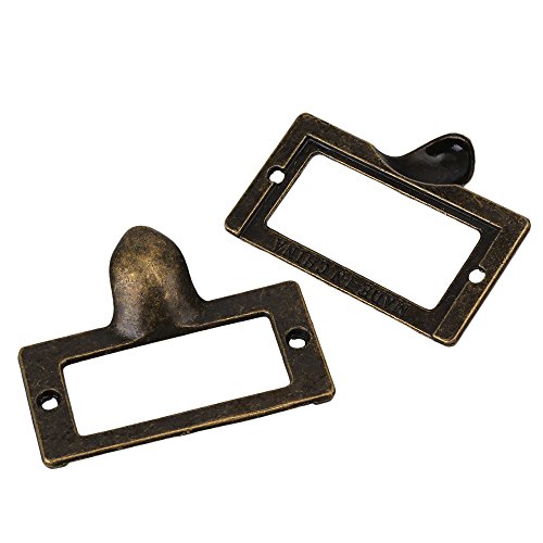 10個アンティークブロンズキャビネットの引き出しケースボックスラベルプルハンドルラベルフレームカードホルダー56x46mm