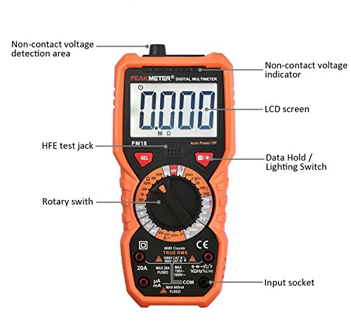 - 機能:本計器にはNCV(非接触式電圧テスト)と過負荷保護機能が付き、自動車や家電製品の安全問題をより安全に解決できます。 多機能設定はAC / DC電圧、AC / DC電流、抵抗、火線、ダイオード、コンデンサ、頻度 などの安全測定の保障となります。