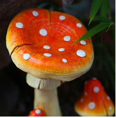 愛らしいオレンジのドット柄がとってもキュートなきのこのガーデンオーナメントです。