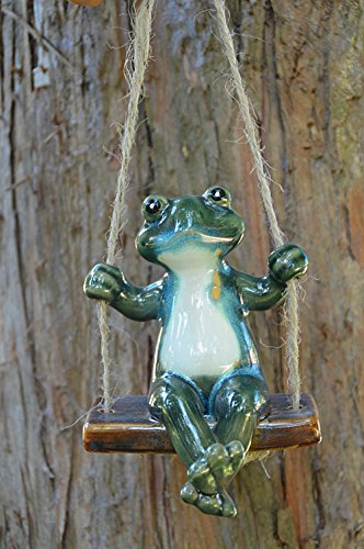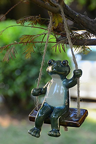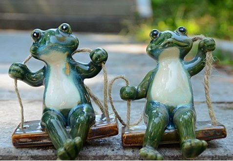 ブランコに乗る 仲良し カエル 楽しい ガーデンオーナメント 2個セット