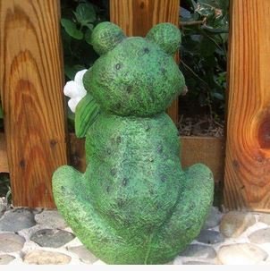 お花をくわえる カエルさん 楽しい ガーデンオーナメント