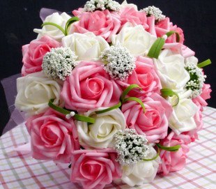 [Neustadt] ウェディングブーケに バラ 造花の ブーケ (ホワイト×ピンク)