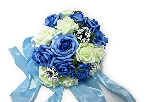 [Neustadt] ウェディングブーケに バラ 造花の ブーケ (ホワイト×ブルー)