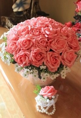 暑い日の結婚式や、写真撮影の時にも生花のようにお花の元気がなくなったり色が変わったりする心配もありませんね。