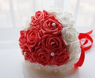 [Neustadt] ウェディングブーケに かわいい ハート型 造花の バラの ブーケ レッド×ホワイト