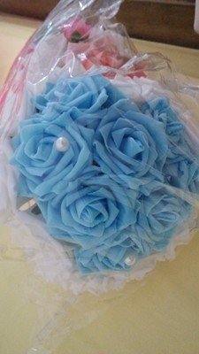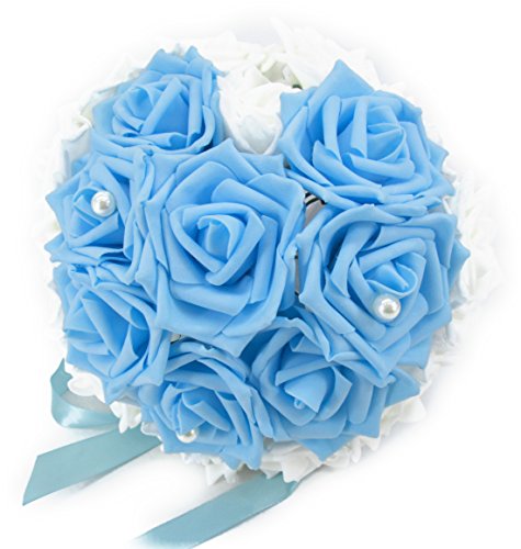 [Neustadt] ウェディングブーケに かわいい ハート型 造花の バラの ブーケ スカイブルー×ホワイト