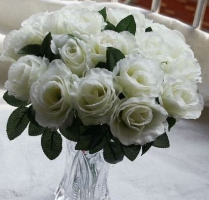 神秘的な美しいブルーと優しいホワイトのの造花のバラ20本セットです