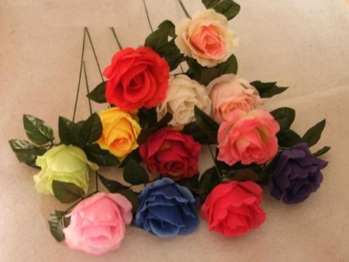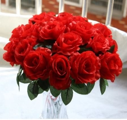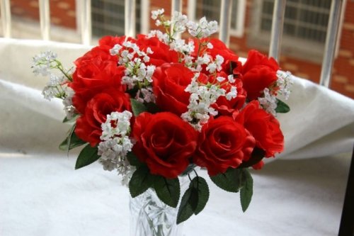 情熱的な真っ赤なバラと清楚なかすみ草のステキな造花のセットです