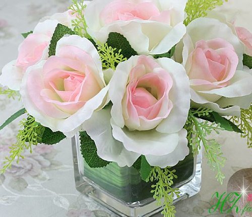 - セット内容 造花のバラ(合計9個の花)+グリーン+ガラス製ポット