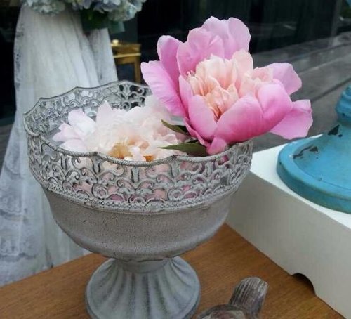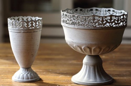 アンティーク風の色合いや質感がとっても素敵なフラワーベースセットです。