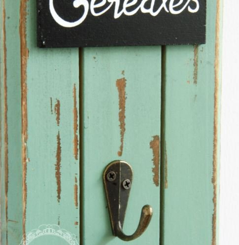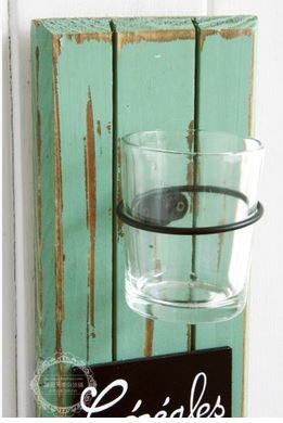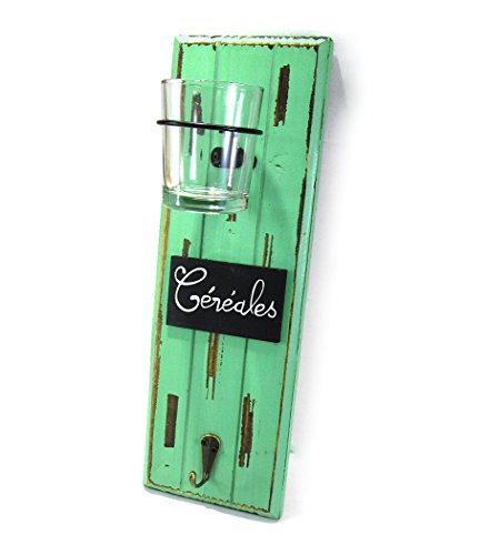 ビンテージ風 フック & グラス付き 木製 壁掛け インテリア 雑貨 (ブルー)
