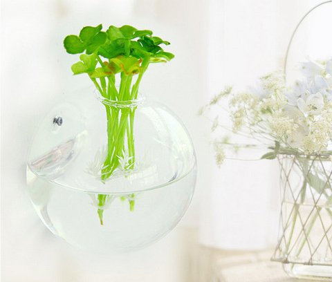 おしゃれで かわいい 半円型 ガラス製 壁掛け用 フラワーベース 2個セット ナチュラル 雑貨