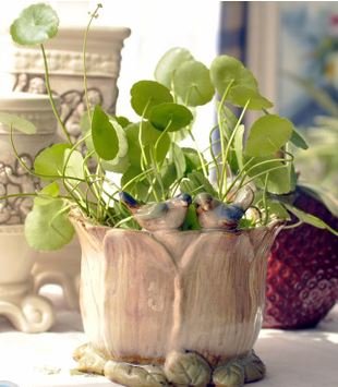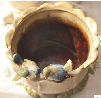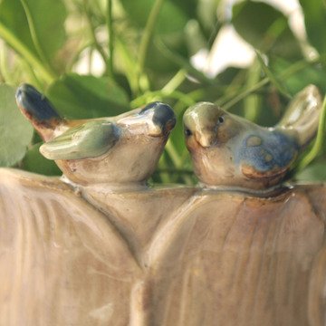 ちょこんと乗った2羽の小鳥さんがとってもかわいい陶器製フラワーポットです。