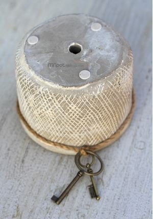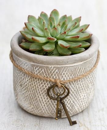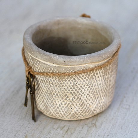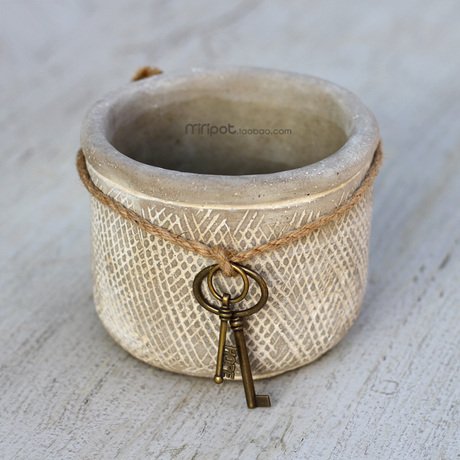 アンティーク風 おしゃれで かわいい フラワーポット 麻ひも & 古カギ チャーム付 植物用 容器