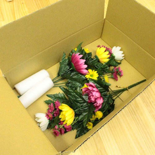 ●※生花と比べて燃えやすい素材のため、ろうそくの火の近くに置かないでください