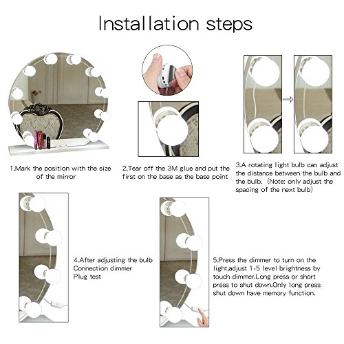 - 5-level明るさ – メイクアップのスーパーライト、当社のバニティライトや減光調整でき、メモリDimmer , 1 – 5レベルを付きキットに、ライトは薄く目を傷つけず、ライトを調整することができしますが、まったく探し回る必要がありません。