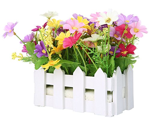 niceeshop ( TM )人工花小さな鉢植えFake菊で設定ピケットフェンス 6025779419765