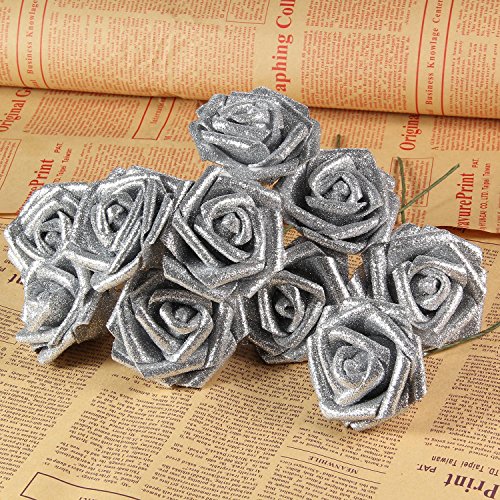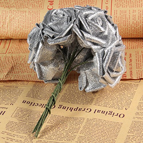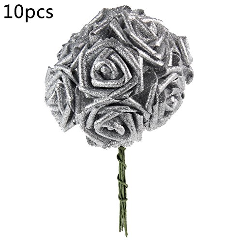 ウェディングブライダルブーケ人工花、シルクRoses Bouquetフェイク花の子、Kids、結婚式、パーティー、教会( 10パック) シルバー 6025779854856