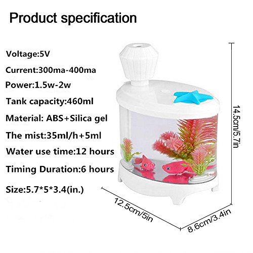 niceeshop ( TM ) 460 ml USBアロマテラピーエッセンシャルオイルディフューザー、ポータブル小さな魚タンククールミストアロマ加湿器空気清浄機で7 Cloor LEDライト、タイマーfor Officeホーム子供ベッドルーム 6025779526876