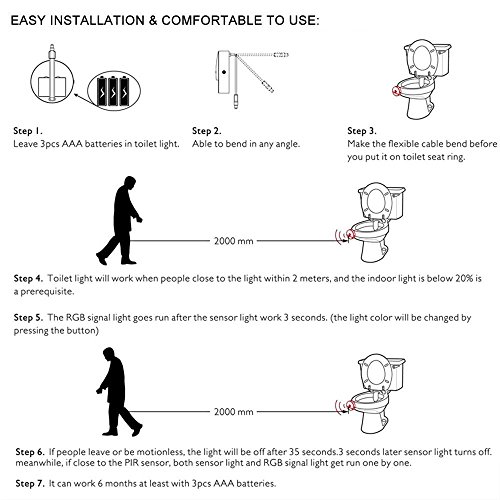 - ✓【省エネ】 – --当社のトイレの夜の光で操作する3つのx AAA電池含まれていないでオンにして、一連の操作をする必要がなし、の高電力バスルーム用のライトではない時間とのコストを節約