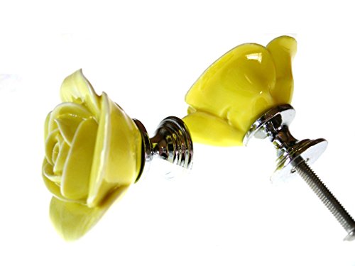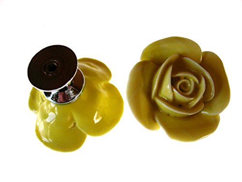 薔薇の取っ手 2個セット 持ち手 つまみ (イエロー)