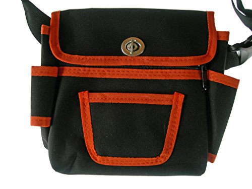 - 大ポケットにはこぼれ防止のロック付き。ファスナー部収納。小ポケット。両脇に差込収納。