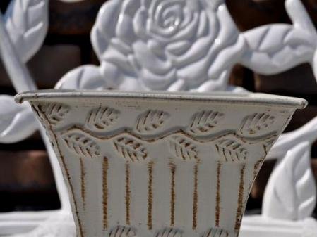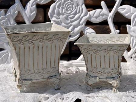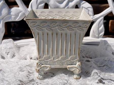 クラッシックでエレガントなリーフスクエアプランターです プランターとしても小物入れとしても用途でお使い頂けます プランターは穴は開いていません サイズ・ W8×D8×H10cm 素材 ・ブリキ