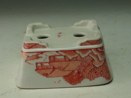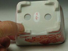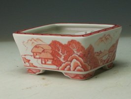 伊藤月香 赤絵山水画長方盆栽鉢【現品】