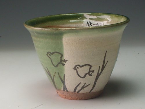 - 正面には千鳥が二匹飛んでいる絵が描かれ裏には草の絵が書かれた山草鉢です。
