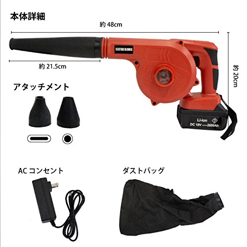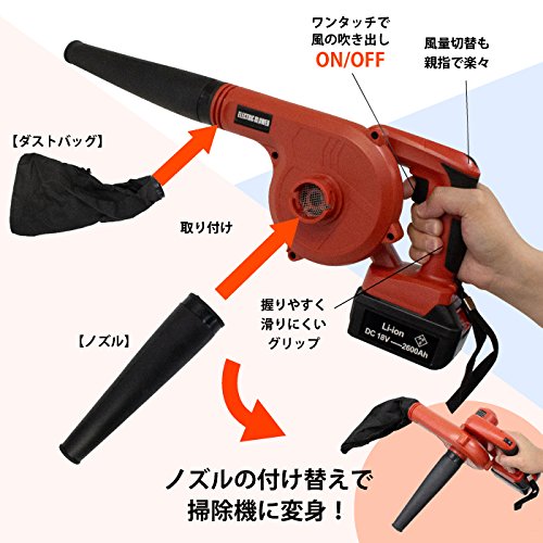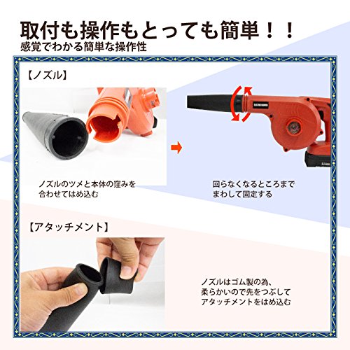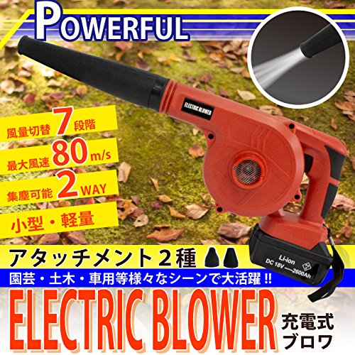 充電式ブロワ バッテリー バキューム アタッチメントセット 小型 軽量 落ち葉 花びら 土木 園芸 車用 パワフル(ELE-BLO)