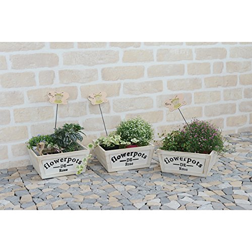 nobrand アンティーク調木製プランターカバー3個組(ピック付) 園芸用品 (TPG727)