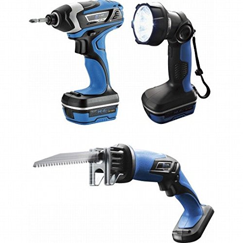 【商品説明】●(インパクトドライバー)・モーター電圧=DC14.4V・回転数=毎分0~2500回転(無段変速)・充電器=AC100V・消費電力=50VA・コード長約1.8m・充電時間=約1時間・付属品=充電器、先端ビット、キャリーバッグ×各1・バッテリーパック×2●(充電式のこぎり)モーター電圧=DC14.4V・付属品=木工用ブレード、塩ビPC用ブレード、鉄工用ブレード、六角棒レンチ×各1●(LEDライト)・使用電球=1W白色LED・連続点灯時間=約10時間(満充電時)・投光角度調節可能使用頻度の高い電動工具を3点セットアップ。日曜大工やDIYユーザー様向けの最適なツールです。初心者の方からセミプロの方まで幅広くご使用できます。