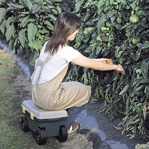 【商品説明】座ったまま移動が出来ますので、剪定作業や果樹の収穫作業に便利です。フタを開けると軍手やハサミなどのガーデニング小物が収納出切るスペースになっています。