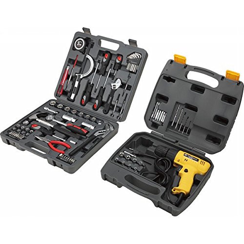 【商品説明】●(工具セット)六角棒レンチ・ソケット6.35mm角×各8、ソケット9.5mm角×7、ドライバー×4、精密ドライバー×3、プラグソケット×2、コンベックス3m・カッター・ヤスリ・ハクソーフレーム・モンキーレンチ・エクステンションバー・ウォーターポンププライヤー・ラチェットハンドル・ネールハンマー・スピンナーハンドル・ビットアダプター・ラジオペンチ・ドライバービットセット・ヘクスローブ六角ビットセット×各1 ●(ドリルドライバーセット)ドライバービット×7、ドリル×5、6.35mm角ソケット×8、ドリルドライバー工具セットに電動ドリルドライバーをプラス。充実の工具セットがあなたの暮らしをサポート。
